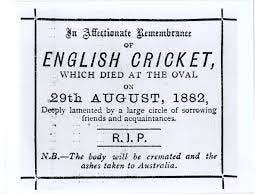 “In Affectionate Remembrance of English Cricket, which died at the Oval on 29th August, 1882, deeply lamented by a large circle of sorrowing friends and acquaintances. R.I.P.